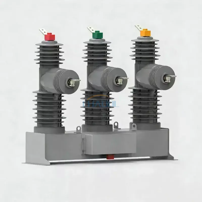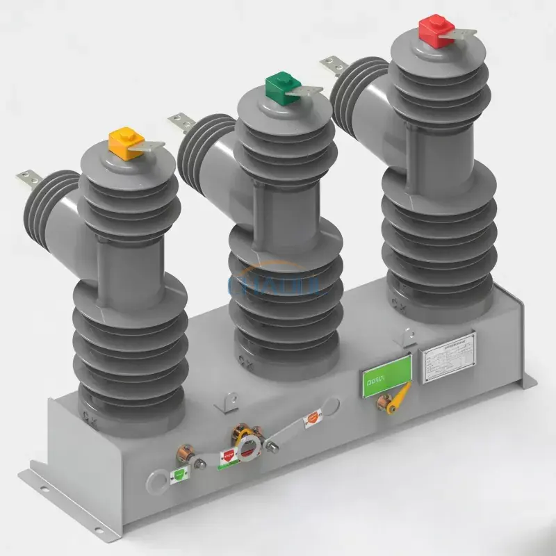 Автоматичний вимикач високої напруги 24KV, встановлений на стовпі, належить до вакуумного автоматичного вимикача зовнішнього типу ZW32-24. Це зовнішній комутаційний пристрій з номінальною напругою 24 кВ і частотою трифазного змінного струму 50 Гц, який в основному використовується для вмикання та вимикання струмів навантаження, струмів перевантаження та струмів короткого замикання в енергосистемах. Він підходить для захисту та контролю на підстанціях і системах розподілу промислових і гірничодобувних підприємств, а також у сільських електромережах, які потребують частої роботи.